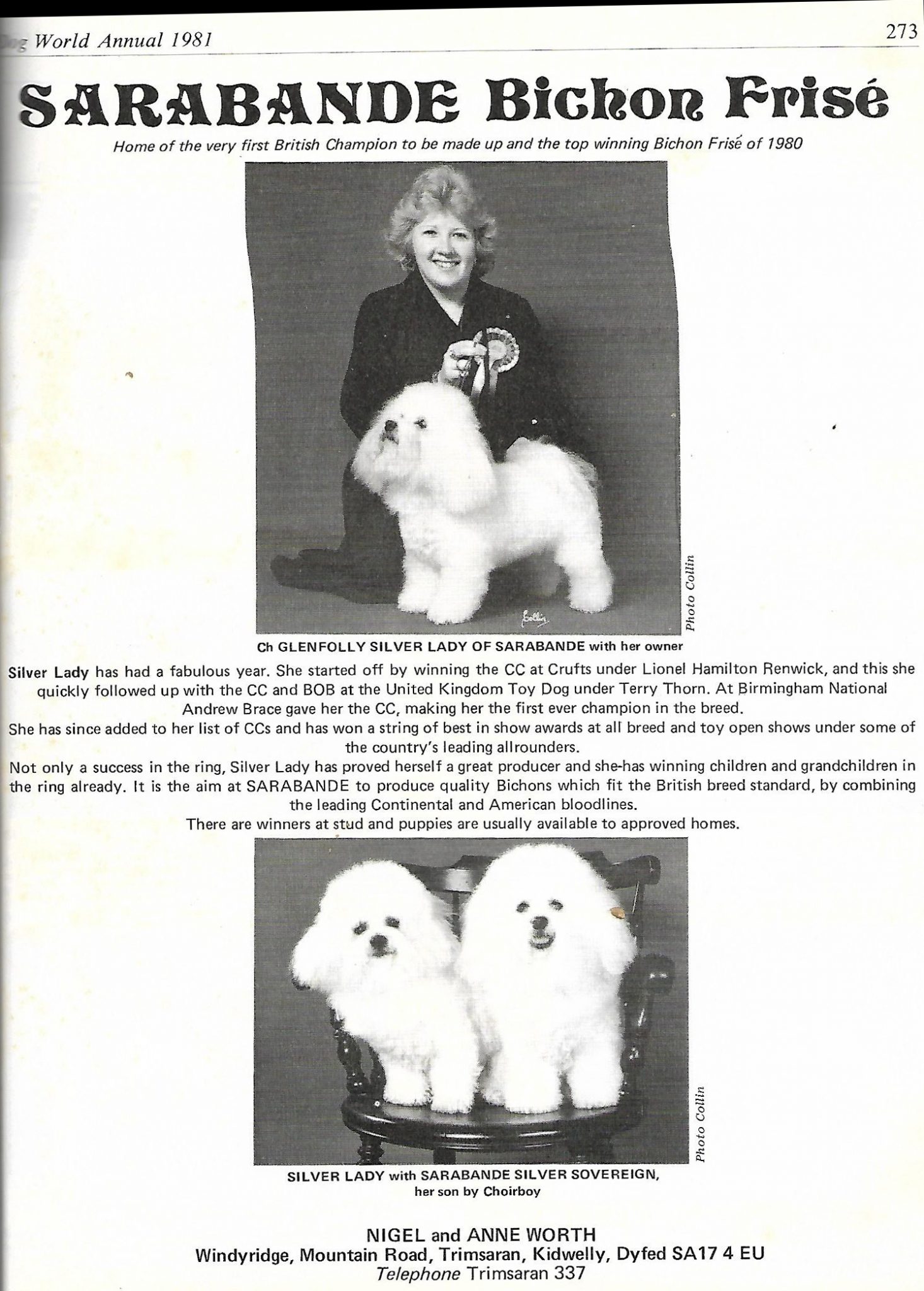 | Am Ch C & D Beau Monde Sunflower of Leander | Ch Chaminade Mr Beau Monde | x | |